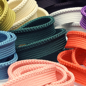 This is the Ayame Piping from SHINDO (S.I.C.). This is a cord piping tape with a twill pattern and luster, and is recommended for processing fabric trims and edging for interior goods such as cushions, as well as jackets and outerwear. Three meter-cut products are sold as samples to check the actual product or for prototypes. Please be sure to check the actual product with a three meter-cut product before purchasing in a roll.