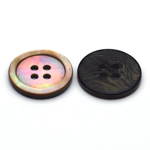 • Natural shells (black-lip, white-lip, brown-lip, and Takase shells) are carefully produced and processed in Japan to produce beautifully finished shell buttons. Because they are made of natural materials, the colors and patterns may differ slightly, but this is their authentic flavor. Shell buttons should be treated with care to avoid chipping and breakage during washing. Removing or a quick hand wash and towel dry is recommended.
