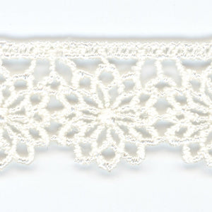 This is the Embroidered Chemical Lace from SHINDO (S.I.C.). This floral pattern lace is embroidered yet has a translucent look like woven thread. It is recommended for casual clothing, dance costumes, children's clothing, and interior accessories. In order to minimize shrinkage during washing and dyeing, all colors, including unbleached ones, have been treated to prevent shrinkage, so if you've ever had a lace sewn to a fabric that has shrunk after washing, don't worry. Three meter-cut products are sold as samples to check the actual product or for prototypes. Please be sure to check the actual product with a three meter-cut product before purchasing in a roll.