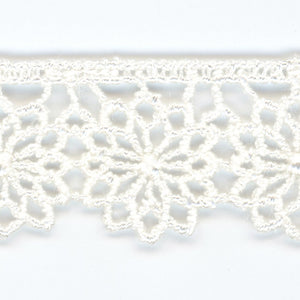 • This is the Embroidered Chemical Lace from SHINDO (S.I.C.). This floral pattern lace is embroidered yet has a translucent look like woven thread. It is recommended for casual clothing, dance costumes, children's clothing, and interior accessories. In order to minimize shrinkage during washing and dyeing, all colors, including unbleached ones, have been treated to prevent shrinkage, so if you've ever had a lace sewn to a fabric that has shrunk after washing, don't worry. Three meter-cut products are sold as samples to check the actual product or for prototypes. Please be sure to check the actual product with a three meter-cut product before purchasing in a roll.