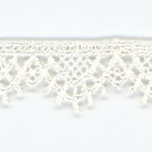 This is the Embroidered Chemical Lace from SHINDO (S.I.C.). This one-sided picot lace is embroidered but has a woven thread-like transparency. It is recommended for casual clothing, dance costumes, children's clothing, and interior accessories. In order to minimize shrinkage during washing and dyeing, all colors, including unbleached ones, have been treated to prevent shrinkage, so if you've ever had a lace sewn to a fabric that has shrunk after washing, don't worry. Three meter-cut products are sold as samples to check the actual product or for prototypes. Please be sure to check the actual product with a three meter-cut product before purchasing in a roll.