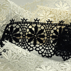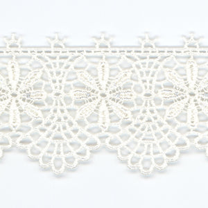 • This is the Embroidered Chemical Lace from SHINDO (S.I.C.). This floral-patterned lace is characterized by its embroidered yet woven thread-like transparency. It is recommended for casual clothing, dance costumes, children's clothing, and interior accessories. In order to minimize shrinkage during washing and dyeing, all colors, including unbleached ones, have been treated to prevent shrinkage, so if you've ever had a lace sewn to a fabric that has shrunk after washing, don't worry. Three meter-cut products are sold as samples to check the actual product or for prototypes. Please be sure to check the actual product with a three meter-cut product before purchasing in a roll.