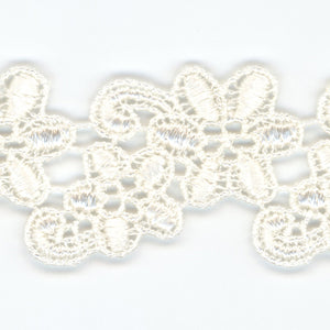 This is the Embroidered Chemical Lace from SHINDO (S.I.C.). This floral-patterned lace is characterized by its embroidered yet woven thread-like transparency. It is recommended for casual clothing, dance costumes, children's clothing, and interior accessories. In order to minimize shrinkage during washing and dyeing, all colors, including unbleached ones, have been treated to prevent shrinkage, so if you've ever had a lace sewn to a fabric that has shrunk after washing, don't worry. Three meter-cut products are sold as samples to check the actual product or for prototypes. Please be sure to check the actual product with a three meter-cut product before purchasing in a roll.