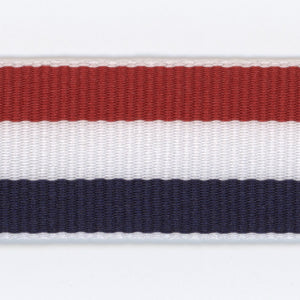 Polyester Stripe Grosgrain Ribbon #02 Rose Red & White & Navy