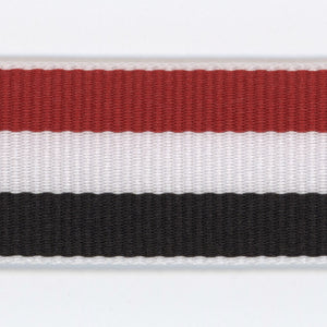 This is the Polyester Stripe Grosgrain Ribbon from SHINDO (S.I.C.). This grosgrain ribbon is made of polyester yarn with yarn-dyed high-grade bright yarn that has a superb luster, beautiful color and good physical properties. Featuring a three-color or two-color stripe pattern, such as the flag colors of the Italian and French flags, this ribbon is recommended for children's clothing, casual wear, hats, bags and other miscellaneous goods applications. Three meter-cut products are sold as samples to check the actual product or for prototypes. Please be sure to check the actual product with a three meter-cut product before purchasing in a roll.