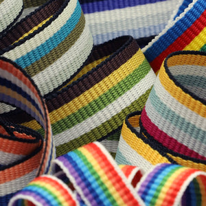 This is the Rainbow Stripe Grosgrain Ribbon from SHINDO (S.I.C.). Grosgrain ribbon in a standard rainbow (7-color stripe) or ethnic color scheme (5-color stripe) is recommended for children's clothing, casual wear, hats, bags and other sundries. Three meter-cut products are sold as samples to check the actual product or for prototypes. Please be sure to check the actual product with a three meter-cut product before purchasing in a roll.