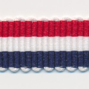 This is the Stripe Grosgrain Ribbon from SHINDO (S.I.C.). A petersham grosgrain ribbon with a clear horizontal wave-like pattern in tricolor or two-color stripes. Because it is 100% polyester, it has good physical properties and is especially recommended for use with casual lines. Three meter-cut products are sold as samples to check the actual product or for prototypes. Please be sure to check the actual product with a three meter-cut product before purchasing in a roll.