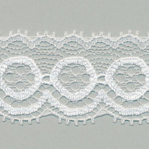 • This is the Jacquard Trimming Lace from SHINDO (S.I.C.). A lace with a pattern that looks like a series of buttons woven on a Russell loom, with a complex and delicate pattern, but also thin and flat. It is recommended for casual clothing, dance costumes, underwear, children's clothing, and interior accessories. In order to minimize shrinkage during washing and dyeing, all colors, including unbleached ones, have been treated to prevent shrinkage, so if you've ever had a lace sewn to a fabric that has shrunk after washing, don't worry. Three meter-cut products are sold as samples to check the actual product or for prototypes. Please be sure to check the actual product with a three meter-cut product before purchasing in a roll.