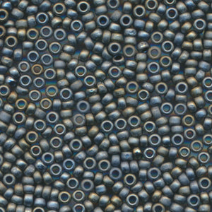 This is a Japanese MIYUKI seed bead with gold impregnated luster glazed into the surface of the beads, which have a matte finish. In the 15/0 size, 20 grams of beads yield approximately 5,000 beads, or about 5 meters on a thread; in the 11/0 size, 20 grams of beads yield approximately 2,200 beads, or about 2.6 meters on a thread. Beads are packed loose.