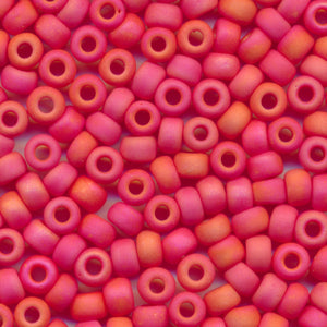 This is a Japanese MIYUKI seed bead with rainbow colors applied to the surface of the frosted beads, which have a matte finish. In the 11/0 size, 20 grams of beads yield approximately 2,200 beads, or about 2.6 meters on a thread; in the 8/0 size, 20 grams of beads yield approximately 780 beads, or about 1.5 meters on a thread; in the 6/0 size, 20 grams of beads yield approximately 240 beads, or about 0.6 meters on a thread. Beads are packed loose.