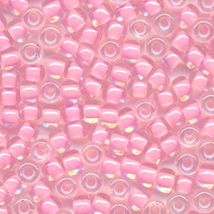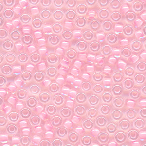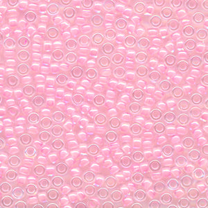 This is a Japanese MIYUKI seed bead with colorless lusters applied to the surface of the beads, which are colored with pigments and dyes in the holes. In the 15/0 size, 20 grams of beads yield approximately 5,000 beads, or about 5 meters on a thread; in the 11/0 size, 20 grams of beads yield approximately 2,200 beads, or about 2.6 meters on a thread; in the 8/0 size, 20 grams of beads yield approximately 780 beads, or about 1.5 meters on a thread. Beads are packed loose.