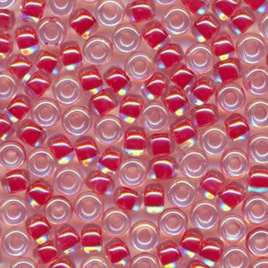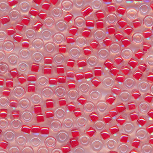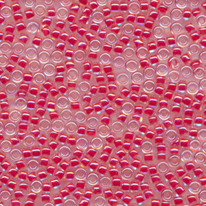 This is a Japanese MIYUKI seed bead with colorless lusters applied to the surface of the beads, which are colored with pigments and dyes in the holes. In the 15/0 size, 20 grams of beads yield approximately 5,000 beads, or about 5 meters on a thread; in the 11/0 size, 20 grams of beads yield approximately 2,200 beads, or about 2.6 meters on a thread; in the 8/0 size, 20 grams of beads yield approximately 780 beads, or about 1.5 meters on a thread. Beads are packed loose.