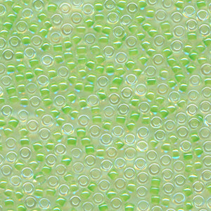 This is a Japanese MIYUKI seed bead with colorless lusters applied to the surface of the beads, which are colored with pigments and dyes in the holes. In the 15/0 size, 20 grams of beads yield approximately 5,000 beads, or about 5 meters on a thread; in the 11/0 size, 20 grams of beads yield approximately 2,200 beads, or about 2.6 meters on a thread. Beads are packed loose.