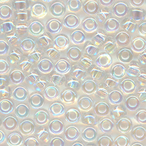 This is a Japanese MIYUKI seed bead with a rainbow of colors on the surface. In the 15/0 size, 20 grams of beads yield approximately 5,000 beads, or about 5 meters on a thread; in the 11/0 size, 20 grams of beads yield approximately 2,200 beads, or about 2.6 meters on a thread; in the 8/0 size, 20 grams of beads yield approximately 780 beads, or about 1.5 meters on a thread; in the 6/0 size, 20 grams of beads yield approximately 240 beads, or about 0.6 meters on a thread. Beads are packed loose.