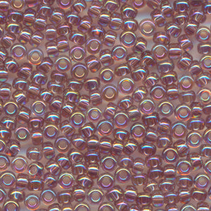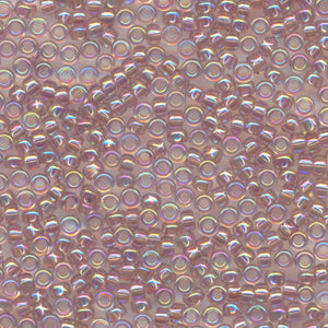 This is a Japanese MIYUKI seed bead with a rainbow of colors on the surface. In the 15/0 size, 20 grams of beads yield approximately 5,000 beads, or about 5 meters on a thread; in the 11/0 size, 20 grams of beads yield approximately 2,200 beads, or about 2.6 meters on a thread. Beads are packed loose.