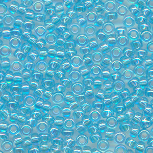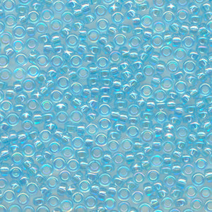 This is a Japanese MIYUKI seed bead with a rainbow of colors on the surface. In the 15/0 size, 20 grams of beads yield approximately 5,000 beads, or about 5 meters on a thread; in the 11/0 size, 20 grams of beads yield approximately 2,200 beads, or about 2.6 meters on a thread. Beads are packed loose.