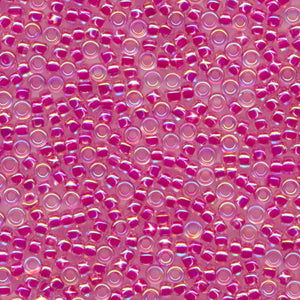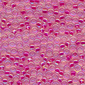 This is a Japanese MIYUKI seed bead with rainbow applied to the surface of the beads, which are colored with pigments and dyes in the holes. In the 15/0 size, 20 grams of beads yield approximately 5,000 beads, or about 5 meters on a thread; in the 11/0 size, 20 grams of beads yield approximately 2,200 beads, or about 2.6 meters on a thread; in the 8/0 size, 20 grams of beads yield approximately 780 beads, or about 1.5 meters on a thread; in the 6/0 size, 20 grams of beads yield approximately 240 beads, or about 0.6 meters on a thread. Beads are packed loose.