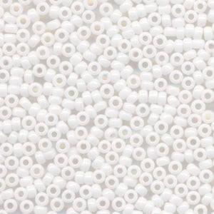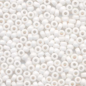 This is a Japanese MIYUKI seed bead with white or color opaque colors. In the 15/0 size, 20 grams of beads yield approximately 5,000 beads, or about 5 meters on a thread; in the 11/0 size, 20 grams of beads yield approximately 2,200 beads, or about 2.6 meters on a thread; in the 8/0 size, 20 grams of beads yield approximately 780 beads, or about 1.5 meters on a thread; in the 6/0 size, 20 grams of beads yield approximately 240 beads, or about 0.6 meters on a thread. Beads are packed loose.
