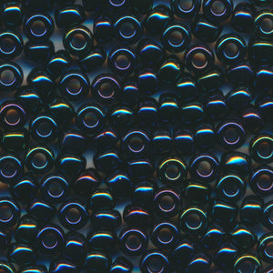 This is a Japanese MIYUKI seed bead with various colors applied to the surface of black beads, etc., or glazed in gold luster, etc. In the 15/0 size, 20 grams of beads yield approximately 5,000 beads, or about 5 meters on a thread; in the 11/0 size, 20 grams of beads yield approximately 2,200 beads, or about 2.6 meters on a thread; in the 8/0 size, 20 grams of beads yield approximately 780 beads, or about 1.5 meters on a thread; in the 6/0 size, 20 grams of beads yield approximately 240 beads, or about 0.6 meters on a thread. Beads are packed loose.