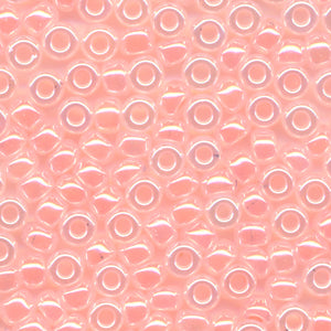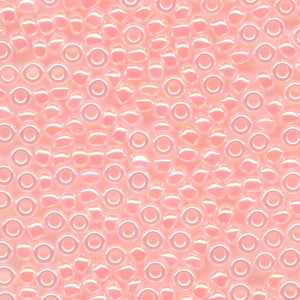 This is a Japanese MIYUKI seed bead which are lustered on the surface of translucent opalescent beads. In the 15/0 size, 20 grams of beads yield approximately 5,000 beads, or about 5 meters on a thread; in the 11/0 size, 20 grams of beads yield approximately 2,200 beads, or about 2.6 meters on a thread; in the 8/0 size, 20 grams of beads yield approximately 780 beads, or about 1.5 meters on a thread; in the 6/0 size, 20 grams of beads yield approximately 240 beads, or about 0.6 meters on a thread. Beads are packed loose.