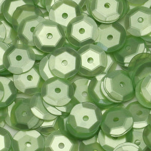 This is a cup round shaped French luxury spangle in a silky pale, gentle color (the hole is in the center). Although not dry-cleanable, they are inexpensive and solidly thick; they are only available in size 6mm, but are available in all six colors. Sequins are packed loose.