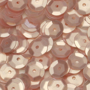 This is a cup round shaped French luxury spangle in a silky pale, gentle color (the hole is in the center). Although not dry-cleanable, they are inexpensive and solidly thick; they are only available in size 6mm, but are available in all six colors. Sequins are packed loose.