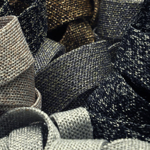 This is the Antique Metallic Knit Tape from SHINDO (S.I.C.). This is a knit tape with soothing antique tone and gentle shimmering, and the use of ultra-fine lame yarn gives it a gentle feel against the skin. Of course, it has the softness of a knit tape and is easy to sew around curves. This tape is recommended for edging and decorating for casual clothing and general merchandise. Note: 10x10mm is binder (bifold) type. Three meter-cut products are sold as samples to check the actual product or for prototypes. Please be sure to check the actual product with a three meter-cut product before purchasing in a roll.