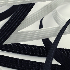 This is the Bone Tape from SHINDO (S.I.C.). This tape can be widely used in wedding dresses, foundations, hats, bags, dolls, and interiors for three-dimensional structures, molding and core materials. The core is made of a lightweight polyester resin material with excellent strength, chemical resistance, heat resistance, and cold resistance, and is sewn with fibers, making it easy to handle as a sewn product. Three meter-cut products are sold as samples to check the actual product or for prototypes. Please be sure to check the actual product with a three meter-cut product before purchasing in a roll.
