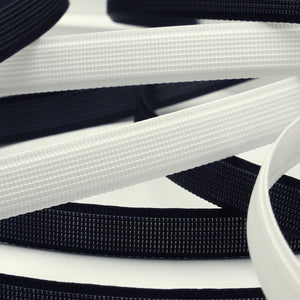 This is the Bone Tape from SHINDO (S.I.C.). This tape can be widely used in wedding dresses, foundations, hats, bags, dolls, and interiors for three-dimensional structures, molding and core materials. The core is made of a lightweight polyester resin material with excellent strength, chemical resistance, heat resistance, and cold resistance, and is sewn with fibers, making it easy to handle as a sewn product. Three meter-cut products are sold as samples to check the actual product or for prototypes. Please be sure to check the actual product with a three meter-cut product before purchasing in a roll.