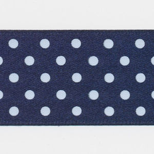 Dot Print Ribbon (Double-Face Satin) #16 Night Blue & White
