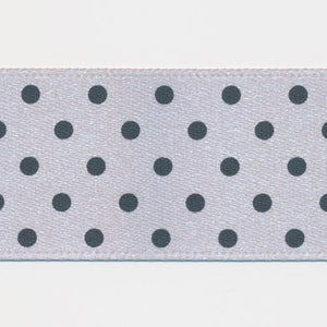 Dot Print Ribbon (Double-Face Satin) #18 Pale Silver & Black