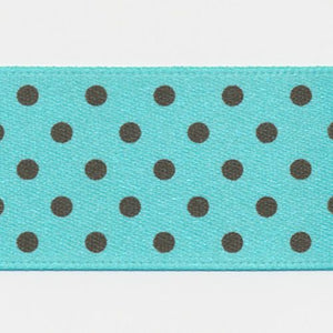 Dot Print Ribbon (Double-Face Satin) #25 Mint & Brown