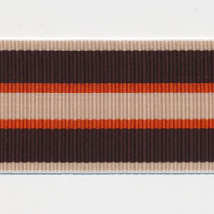 Recycled Polyester Stripe Grosgrain Ribbon #5 Beige & Brown & Orange