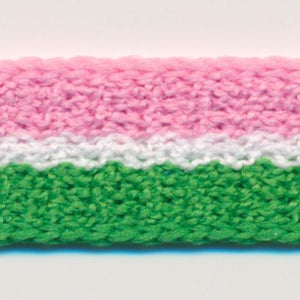 This is the Stripe Pile Tape from SHINDO (S.I.C.). This is a pile knit tape in a two-color or tricolor stripe pattern. It's soft and gentle on the skin, and is widely used for children's clothing and homeware. It has a stretchiness that is unique to its knit structure, and is recommended for use in combination with knit fabric for cap seams and collar retention. Three meter-cut products are sold as samples to check the actual product or for prototypes. Please be sure to check the actual product with a three meter-cut product before purchasing in a roll.