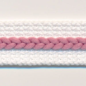 This is the Chain Line Tape from SHINDO (S.I.C.). A knit tape with a convex, chain-like decoration at the center of the tape, giving it a three-dimensional look. It has a high design quality and is recommended for use in casual clothing and general merchandise. Three meter-cut products are sold as samples to check the actual product or for prototypes. Please be sure to check the actual product with a three meter-cut product before purchasing in a roll.