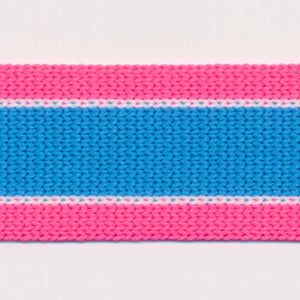 This is the Knit Line Tape from SHINDO (S.I.C.). Single-sided knit tape with a thin, three-color stripe pattern (looks like a two-color type, but has accent colors on both sides of the center color). Moderate elasticity as only a knit tape can, and it's recommended for use with stretchy fabrics such as jersey. Three meter-cut products are sold as samples to check the actual product or for prototypes. Please be sure to check the actual product with a three meter-cut product before purchasing in a roll.