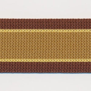 This is the Knit Line Tape from SHINDO (S.I.C.). Single-sided knit tape with a thin, three-color stripe pattern (looks like a two-color type, but has accent colors on both sides of the center color). Moderate elasticity as only a knit tape can, and it's recommended for use with stretchy fabrics such as jersey. Three meter-cut products are sold as samples to check the actual product or for prototypes. Please be sure to check the actual product with a three meter-cut product before purchasing in a roll.