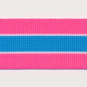 This is the Knit Line Tape from SHINDO (S.I.C.). Single-sided knit tape with a thin, three-color stripe pattern (looks like a two-color type, but has accent colors on both sides of the center color). Moderate elasticity as only a knit tape can, and it's recommended for use with stretchy fabrics such as jersey. Three meter-cut products are sold as samples to check the actual product or for prototypes. Please be sure to check the actual product with a three meter-cut product before purchasing in a roll.