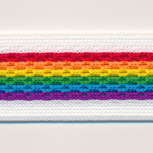 This is the Rainbow Mesh Tape from SHINDO (S.I.C.). The center of the tape is rainbow-colored (the base color is white or black), and its mesh structure allows for good air permeability and the stretchiness of the knit structure makes it ideal for use in casual clothing and general merchandise. Three meter-cut products are sold as samples to check the actual product or for prototypes. Please be sure to check the actual product with a three meter-cut product before purchasing in a roll.