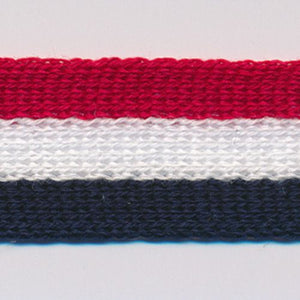This is the Cotton Stripe Knit Tape from SHINDO (S.I.C.). Made of 100% natural cotton fiber, this knit tape has a striped pattern in three or two colors, including flag colors. Because of the stretchiness of knit fabrics, it is recommended for use with stretchy fabrics and for use in children's clothing and men's casual clothing. Three meter-cut products are sold as samples to check the actual product or for prototypes. Please be sure to check the actual product with a three meter-cut product before purchasing in a roll.