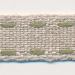 Double Stitched Linen Ribbon #8 Ecru & Green