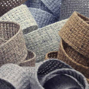This is the Melange Natural Ribbon from SHINDO (S.I.C.). A melange of cotton with a gentle texture and rough black hemp mixed with a mixture of black cotton, with a rustic and deep look. It is woven like a mesh and has a good air permeability, so it is recommended for use in clothing and general merchandise. Three meter-cut products are sold as samples to check the actual product or for prototypes. Please be sure to check the actual product with a three meter-cut product before purchasing in a roll.
