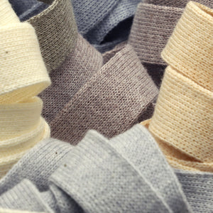 This is the Cotton Mingle Tape from SHINDO (S.I.C.). The mixture of colors is made by dividing the raw cotton (yarns) into different types of dyeing, and the mixture of colors makes it possible to use this tape in autumn and winter even though it is cotton. It has a soft and elegant atmosphere and is popular as a skin-friendly tape for children's wear. Note: 9x9mm and 12x12mm are binder (bifold) type. Three meter-cut products are sold as samples to check the actual product or for prototypes. Please be sure to check the actual product with a three meter-cut product before purchasing in a roll.
