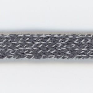 This is the Mingle Flat Cord from SHINDO (S.I.C.). This is a warm and melange-like flat cord with white yarn woven into it. It is easy to tie a knot because of its tubular structure, and the knot is hard to come undone, so we recommend this cord for hoodie strings, sweatshirt waist strings, shoe strings, bag drawstrings, etc. Three meter-cut products are sold as samples to check the actual product or for prototypes. Please be sure to check the actual product with a three meter-cut product before purchasing in a roll.