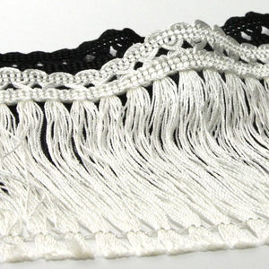 This is the Rayon Fringe from SHINDO (S.I.C.). This fringe has the silky sheen and feel of rayon, and the long pile of hair gives it movement. The seam allowance is also decorative and is recommended for lampshades, interior design and small accessories. The pile is protected by a tightening thread to prevent it from getting tangled. Three meter-cut products are sold as samples to check the actual product or for prototypes. Please be sure to check the actual product with a three meter-cut product before purchasing in a roll.