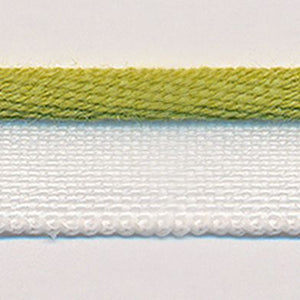 This is the Bright Piping Tape from SHINDO (S.I.C.). A woven piping with white seam allowance and bright yarn on the head, and despite its polyester-nylon composition, it has an elegant, warm, cotton-like texture and a gentle sheen that is not too casual, making it a clothing material. We recommend this tape for treating the seams of casual clothing. Three meter-cut products are sold as samples to check the actual product or for prototypes. Please be sure to check the actual product with a three meter-cut product before purchasing in a roll.