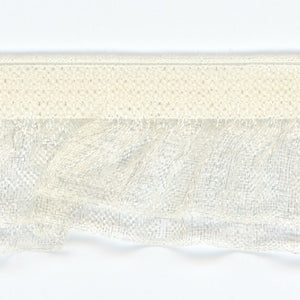 This is the Layered Frill Stretch from SHINDO (S.I.C.). It is an elastic frill tape made of sheer organdy layered in two layers of different lengths, and it has a luster and lightness that only nylon material can provide, and it goes well with thin body fabrics. It is recommended for use in casual clothing and general merchandise. Three meter-cut products are sold as samples to check the actual product or for prototypes. Please be sure to check the actual product with a three meter-cut product before purchasing in a roll.