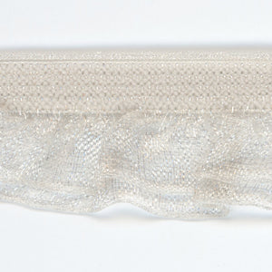 This is the Layered Frill Stretch from SHINDO (S.I.C.). It is an elastic frill tape made of sheer organdy layered in two layers of different lengths, and it has a luster and lightness that only nylon material can provide, and it goes well with thin body fabrics. It is recommended for use in casual clothing and general merchandise. Three meter-cut products are sold as samples to check the actual product or for prototypes. Please be sure to check the actual product with a three meter-cut product before purchasing in a roll.