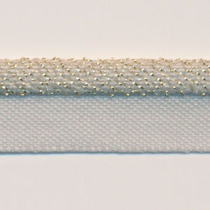 This is the Metallic Stretch Piping (Gold) from SHINDO (S.I.C.). This piping tape emphasizes the " lame" feel of the gold-colored ultra-fine lame, and its soft and comfortable texture is one of its features. Since the lame thread is relatively hard, it is difficult to sew the curves in normal lame piping, but this tape has elasticity, so it follows the curves and is easy to sew and finished beautifully. We recommend this tape for decorating the seams and matching of fabrics for casual clothing and general merchandise. Three meter-cut products are sold as samples to check the actual product or for prototypes. Please be sure to check the actual product with a three meter-cut product before purchasing in a roll.