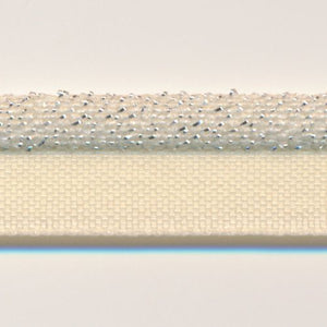 This is the Metallic Stretch Piping (Silver) from SHINDO (S.I.C.). This piping tape emphasizes the " lame" feel of the silver-colored ultra-fine lame, and its soft and comfortable texture is one of its features. Since the lame thread is relatively hard, it is difficult to sew the curves in normal lame piping, but this tape has elasticity, so it follows the curves and is easy to sew and finished beautifully. We recommend this tape for decorating the seams and matching of fabrics for casual clothing and general merchandise. Three meter-cut products are sold as samples to check the actual product or for prototypes. Please be sure to check the actual product with a three meter-cut product before purchasing in a roll.